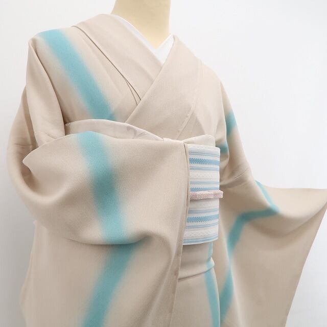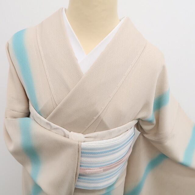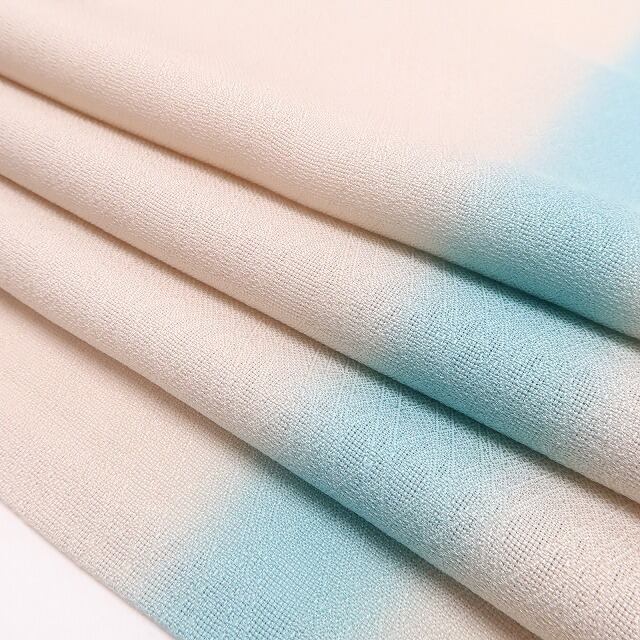 亜麻色の紋紗に、浅葱色の縦ぼかしがすっと流れるように添えられた一枚。