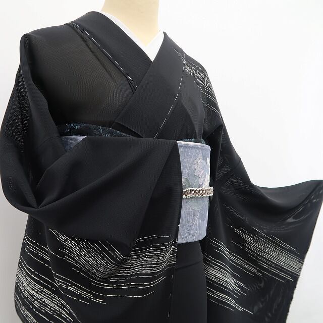 昨今、夏に和装をされる方が少なくなり希少なものとなりつつある絽のお着物は、二本の経糸を捩りながら緯糸を織り込んだもじり織で、盛夏のお召し物として涼しげでさらりとした生地質が魅力、着る方にもまた見る方にも清らかな風を感じるような涼しさを届けてくれます。