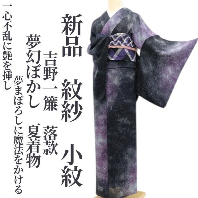 新品 紋紗 吉野一簾 落款 夢幻ぼかし 夏着物“一心不乱に艶を挿し夢まぼろしに魔法をかける”正絹 仕付け糸付 小紋 6445