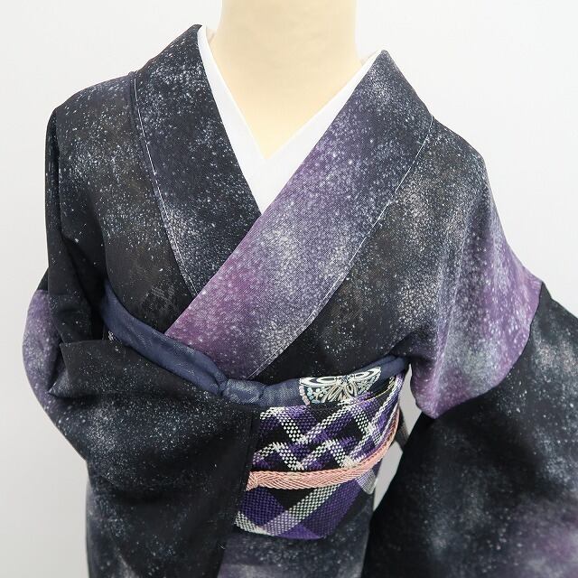 こちらのお着物は、“一廉もの”ならではの丁寧な柄付けで従来ある暈し柄のパターンを新たな視点でデザイン化しております。上質な生地感にどこかミステリアスな雰囲気もまた一興…独創に艶めく色柄が和モダン香る美しい仕上がりになっています。
