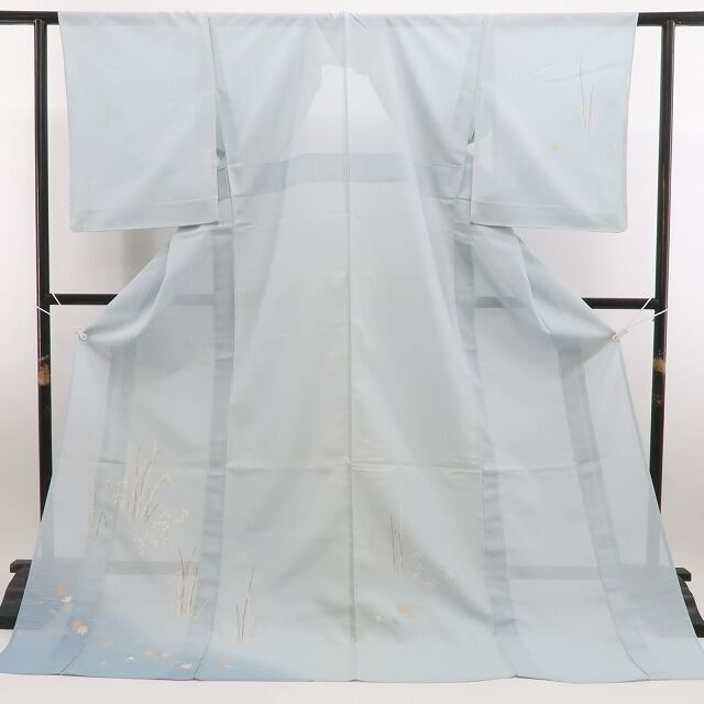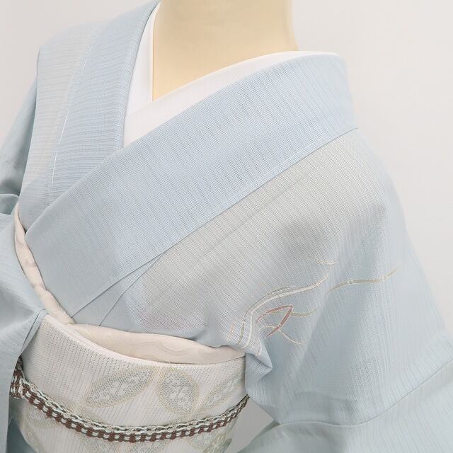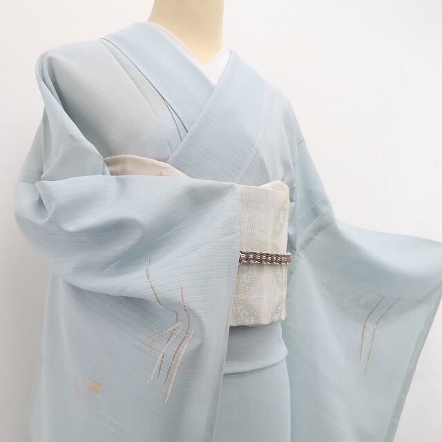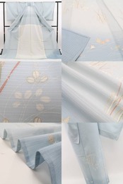こちらのお着物は、ペールトーンの彩色に夏モダンを意識した野花の一景を込めております。楚々として上品に…夏着物の透明感とともに嫌みのないさりげないセンスがとても印象的に際立つお召し物です。
