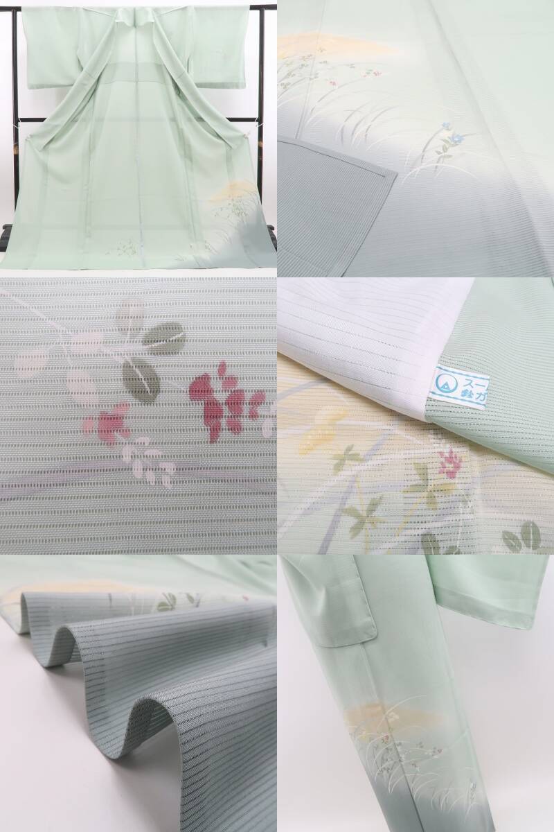 新品 絽 鈴乃屋謹製 夏着物 正絹 仕付け糸付”薄萌葱色に宿る優美な夏の嗜み”訪問着 6449