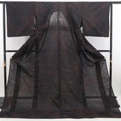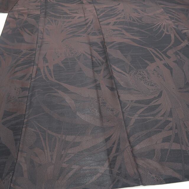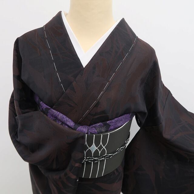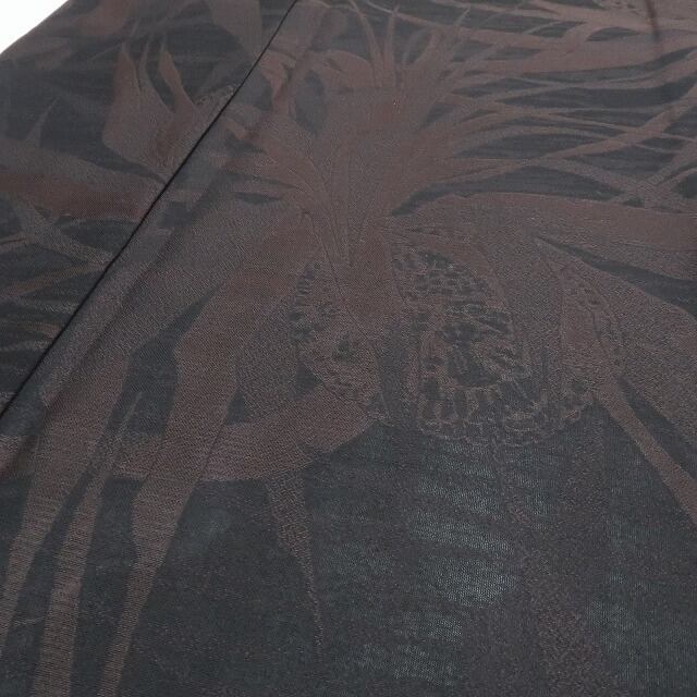 こちらは、黒鳶色の生地に大きく織り込まれた柄が浮かび上がる、洗練された一枚。