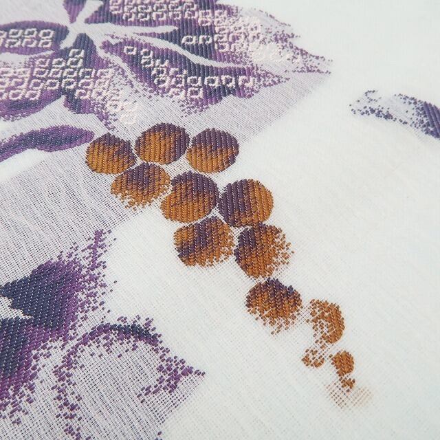 美品 紗 葡萄 夏着物 正絹”涼やかな紗に葡萄の実りを込めて”袋帯 6454
