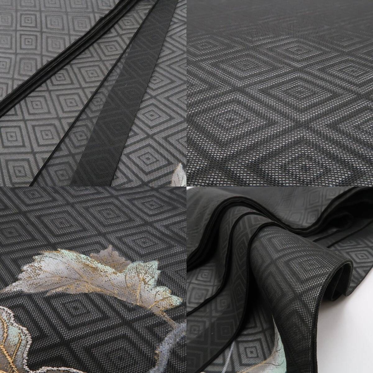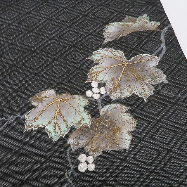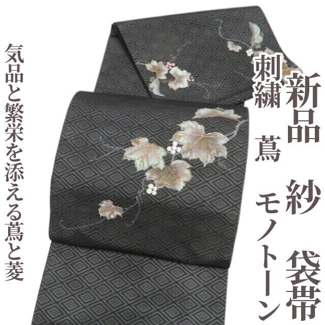 新品 紗 刺繍 蔦 モノトーン 夏着物 正絹”気品と繁栄を添える蔦と菱”袋帯 6457