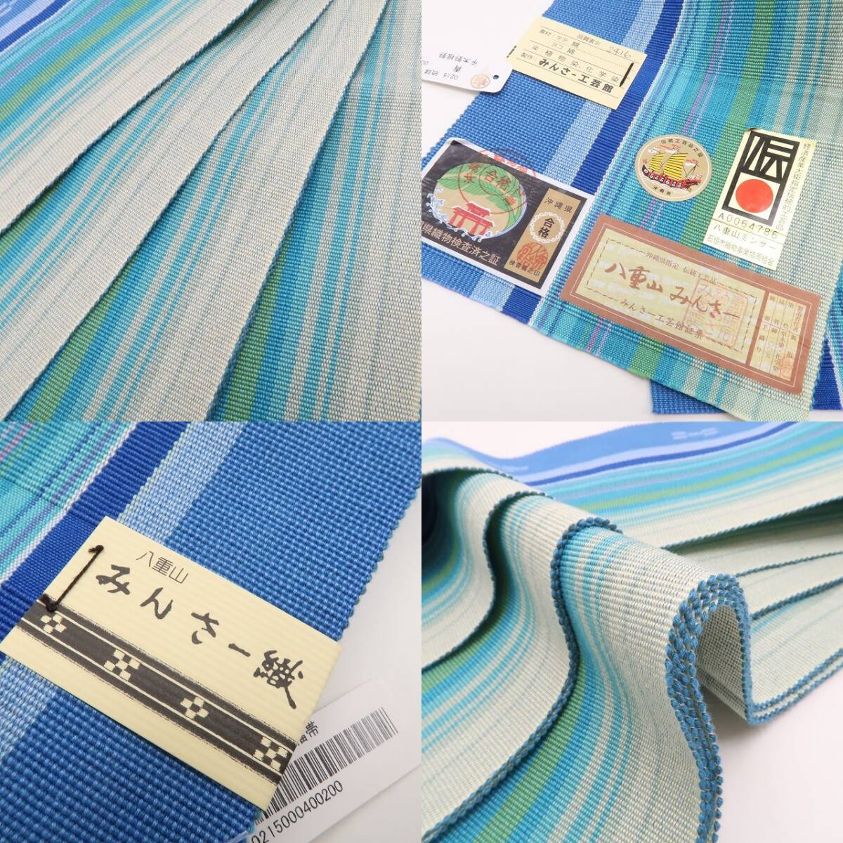 新品 八重山みんさー ミンサー 綿 夏着物“永遠の愛の証…遥かなる想いを繋ぐ人と風の物語”浴衣 証紙付 半幅帯 6461