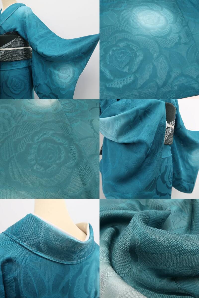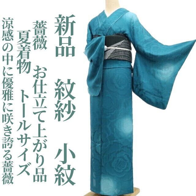 新品 紋紗 薔薇 お仕立て上がり品 夏着物 仕付け糸付 トールサイズ”涼感の中に優雅に咲き誇る薔薇”小紋 6472