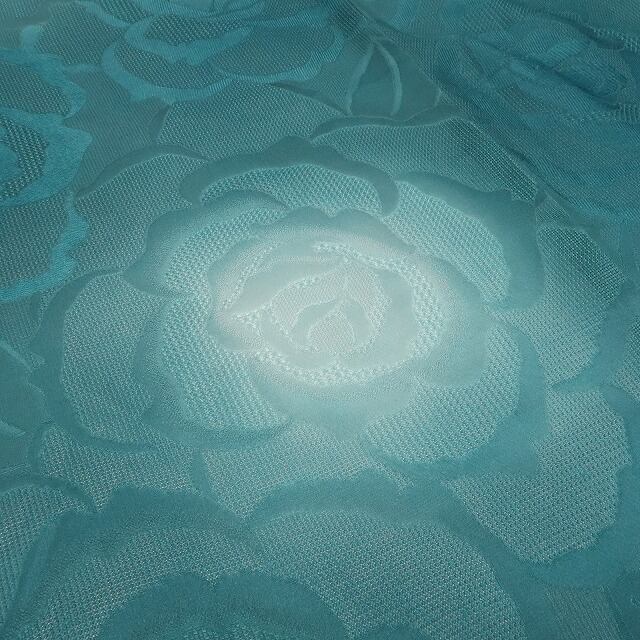 こちらは、納戸色の地に薔薇の意匠が織り込まれた一枚。