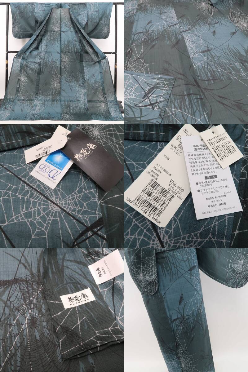 新品 撫松庵 セオアルファ ススキと蜘蛛の巣 洗える夏着物 仕付け糸付”闇夜に浮かぶススキと蜘蛛の糸が紡ぐ物語”小紋 浴衣6476