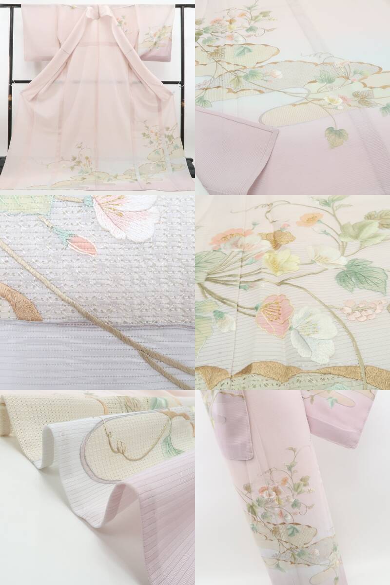 華やかな総刺繍の訪問着は、結婚式やお茶会、七五三やお宮参りなど、フォーマルな夏のお出かけにぴったり。