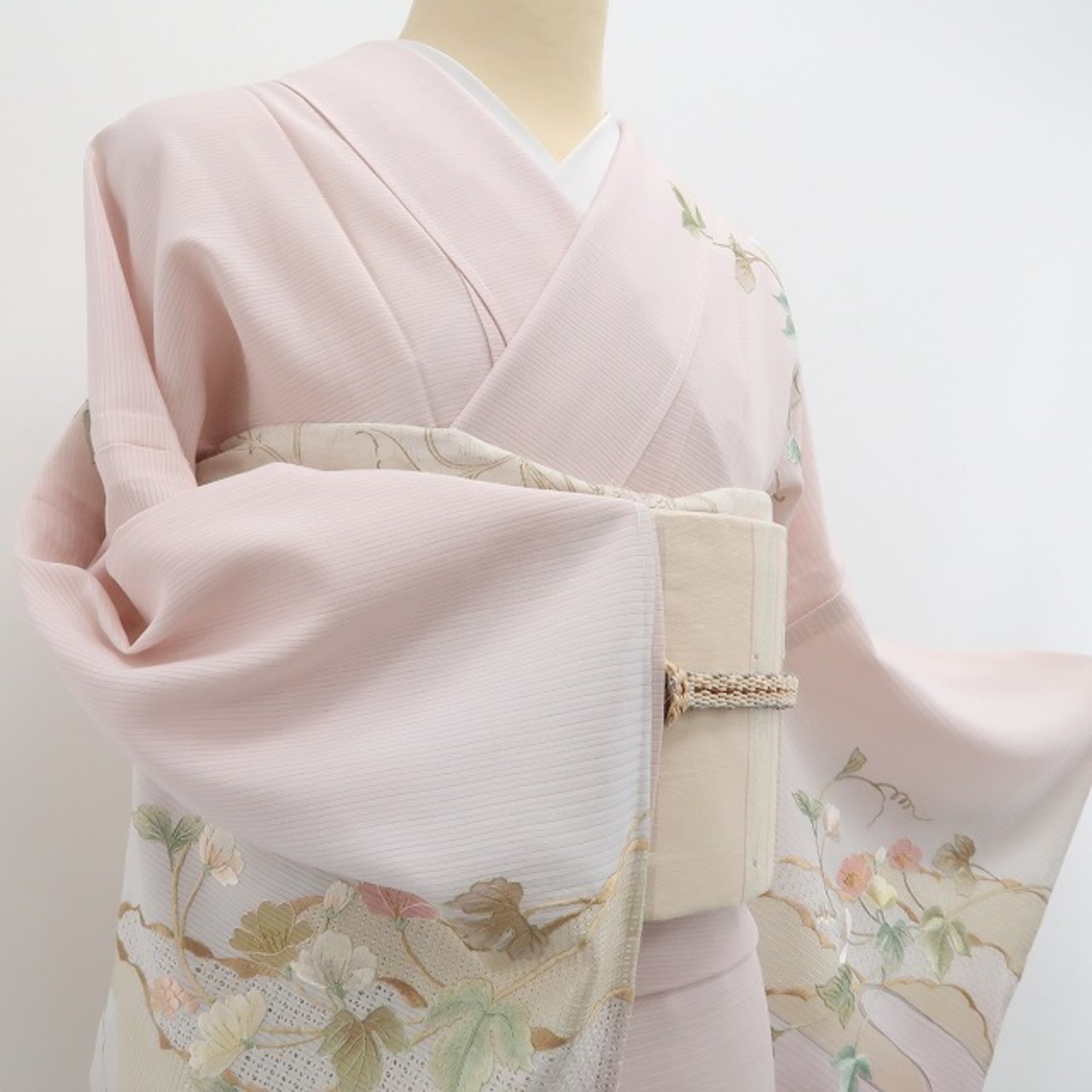 やさしい色合いは、帯や小物で印象を変えることで長くご愛用いただけます。