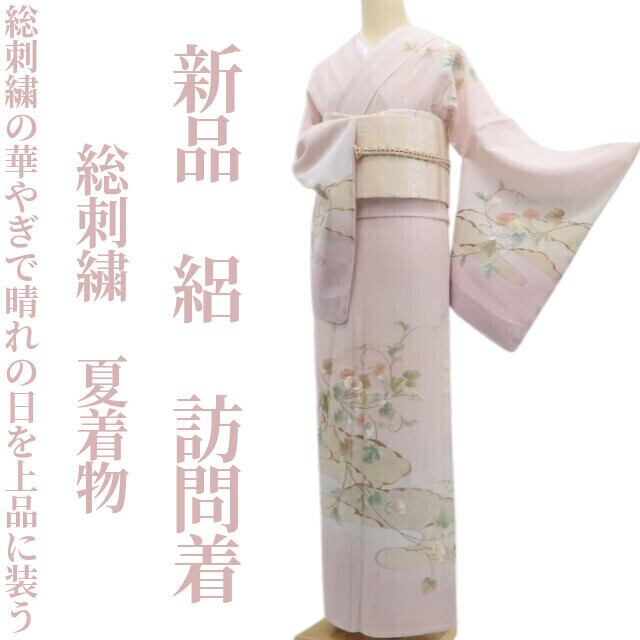 新品 絽 総刺繍 夏着物 正絹 仕付け糸付”淡く咲く総刺繍の華やぎで、晴れの日を上品に装う”訪問着 6482