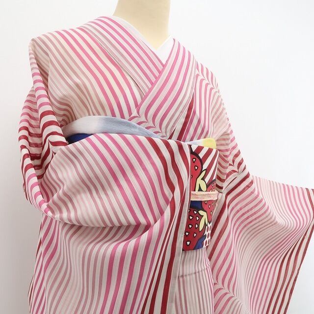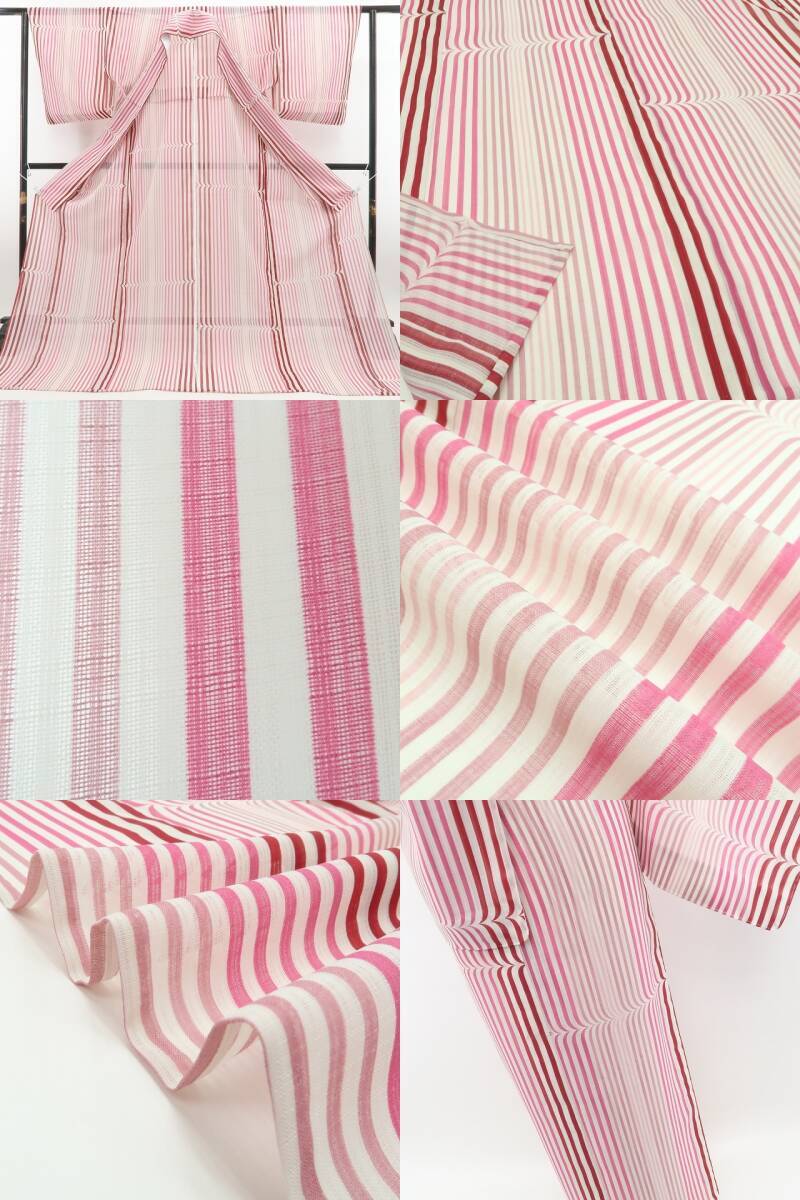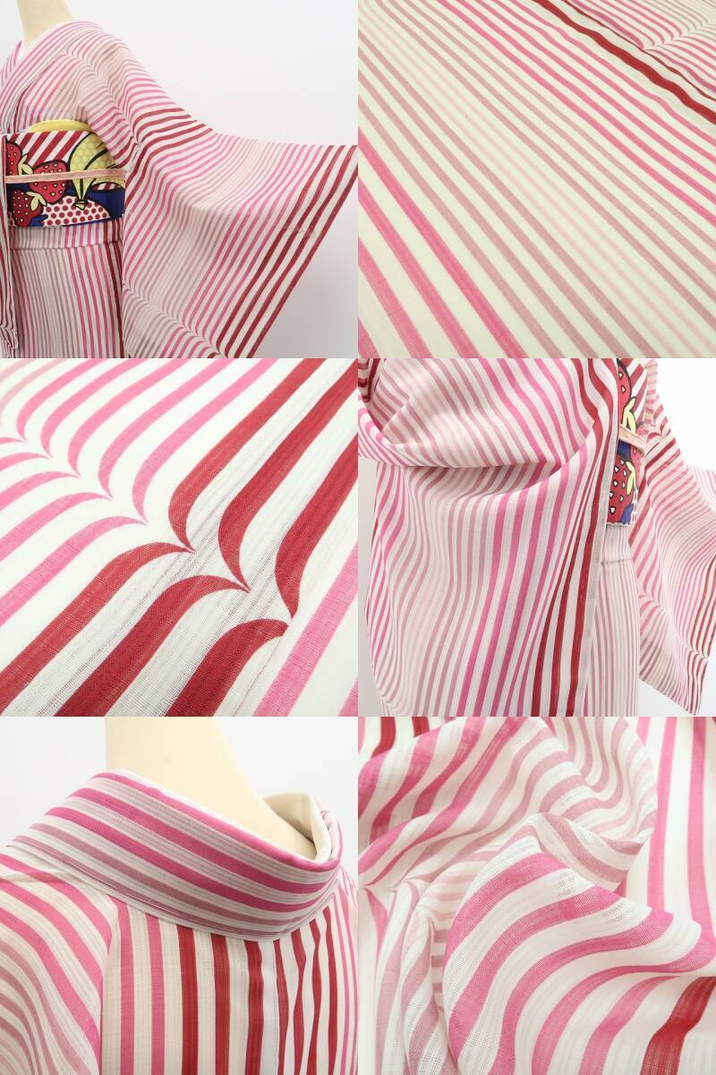 新品 紗 お仕立て上がり品”いつまでもあなたの日常に寄り添うストライプ”ストライプ 洗える夏着物 トールサイズ 小紋 6486