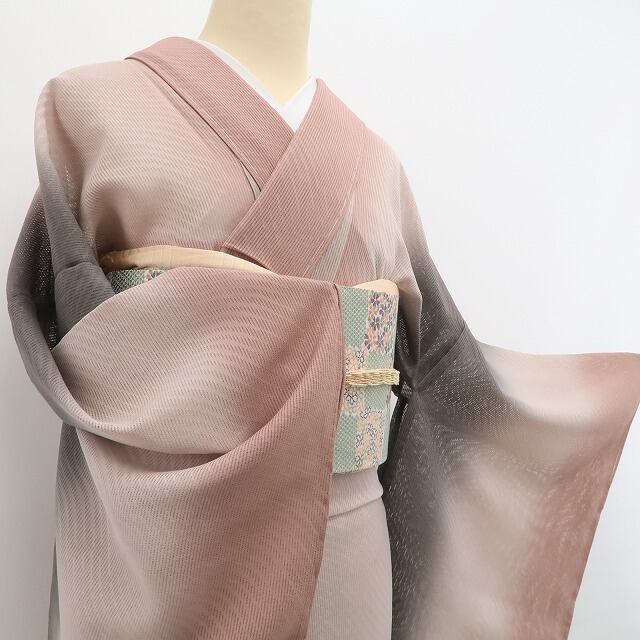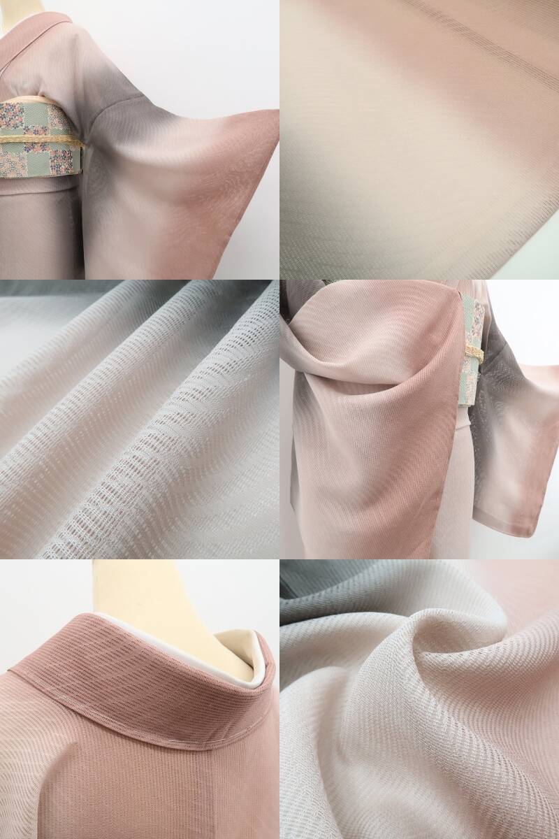 こちらのお着物は、鴇浅葱(ときあさぎ)色の紋紗に暈しを施した一枚。