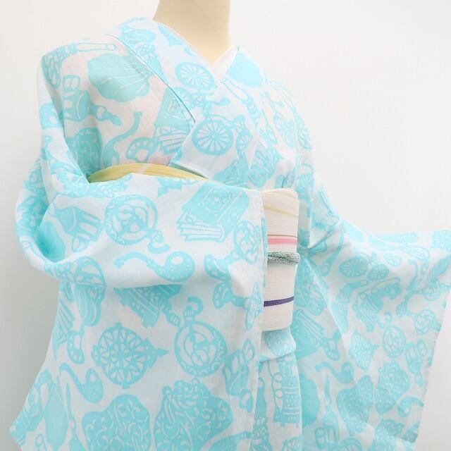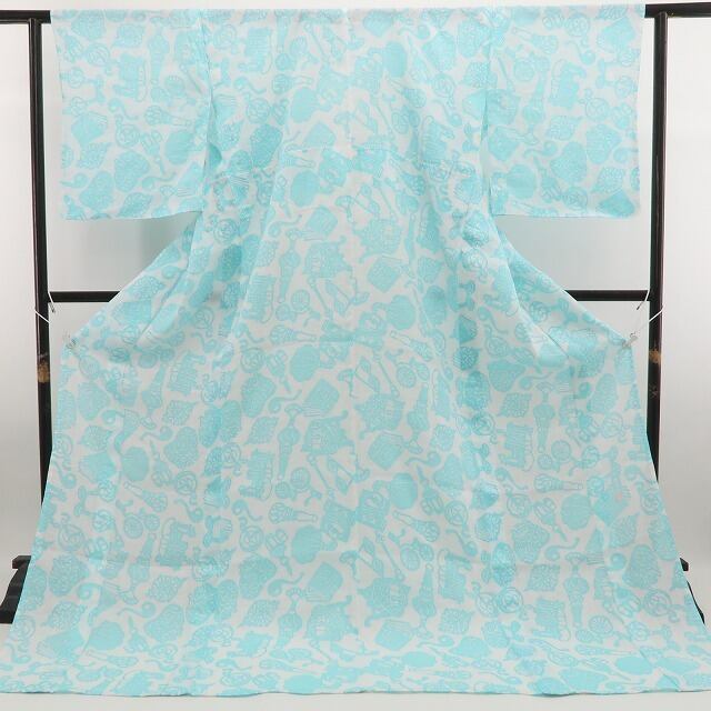 白×新橋色の地に、繊細な江戸更紗の紋様が浮かぶ……