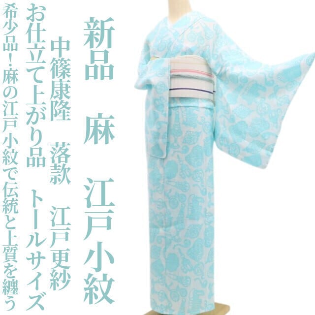 新品 麻 中篠康隆 落款 江戸更紗 お仕立て上がり品 仕付け糸付 トールサイズ”希少品!麻の江戸小紋で伝統を纏う”江戸小紋6494