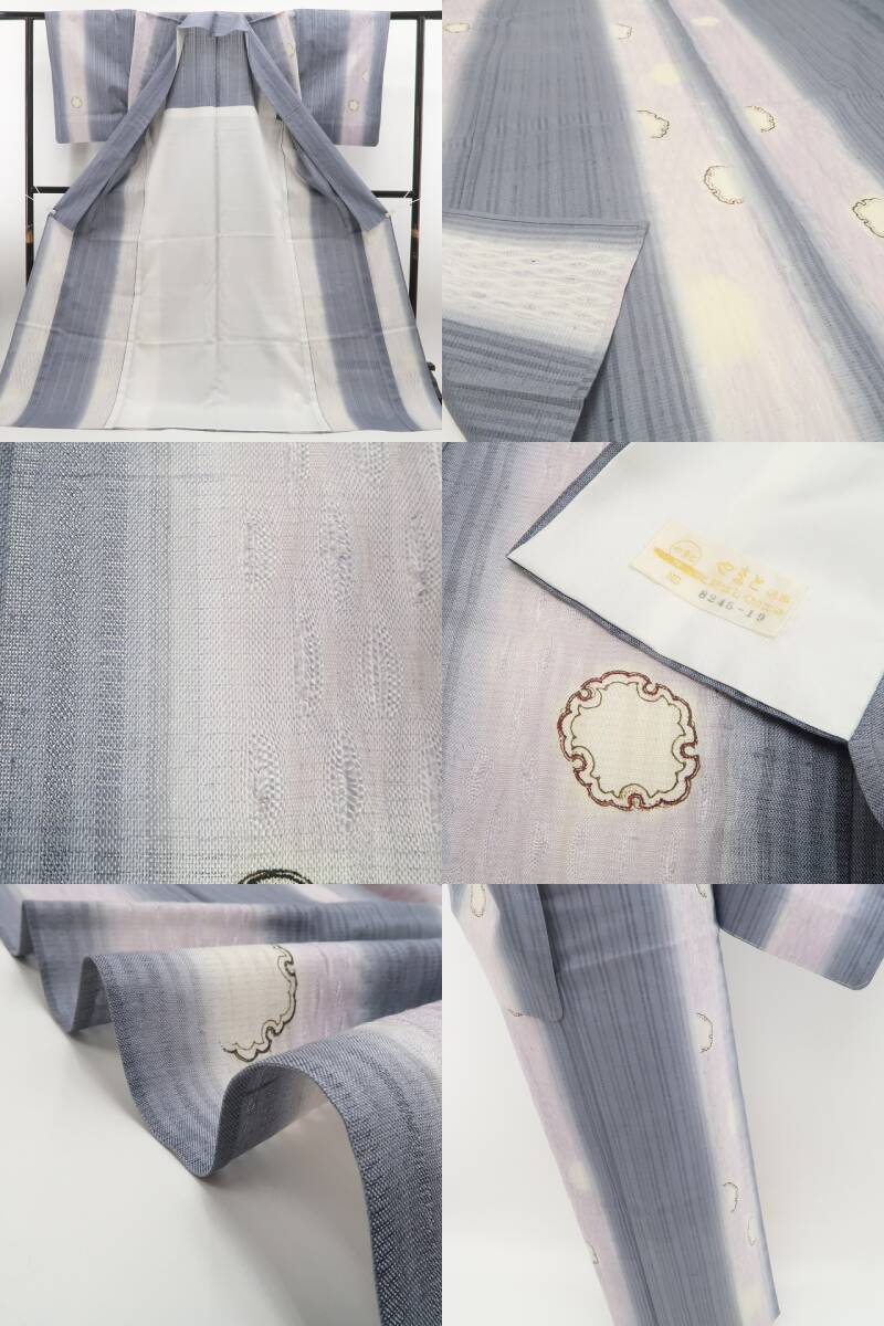 新品 夏単衣 やまと誂製 ゴールドラベル 櫛引き織 雪輪 夏着物 仕付け糸付”溶けあう色彩と雪輪が涼と癒しを運ぶ”紬 6502