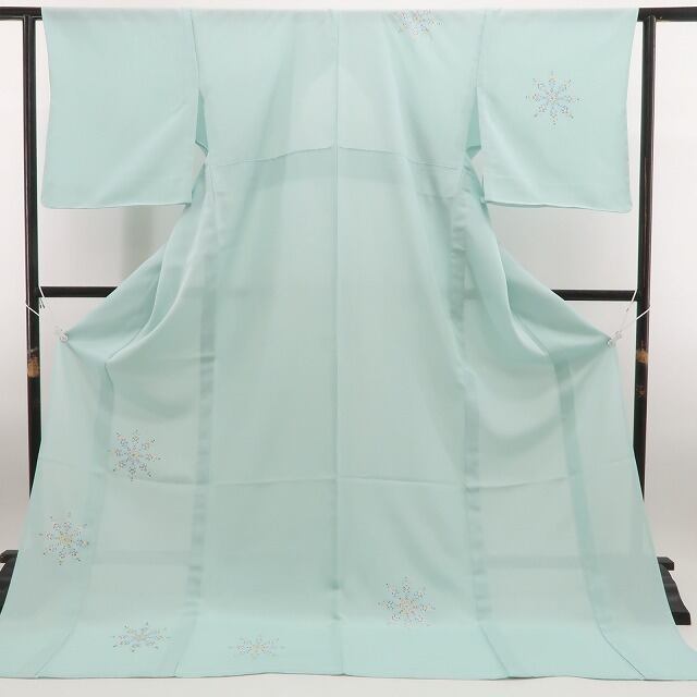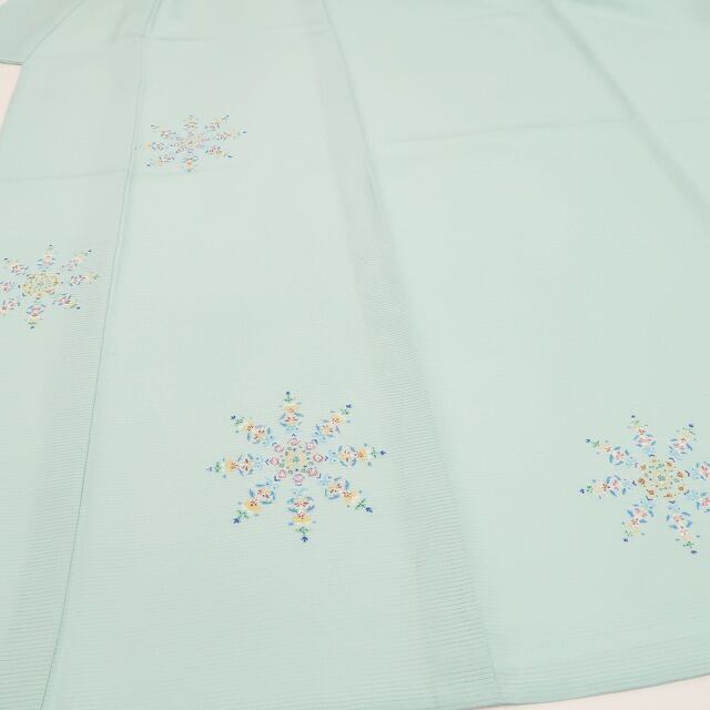 こちらのお着物は、白群色の絽に華文がふわりと浮かぶ、涼やかで品のある一枚。