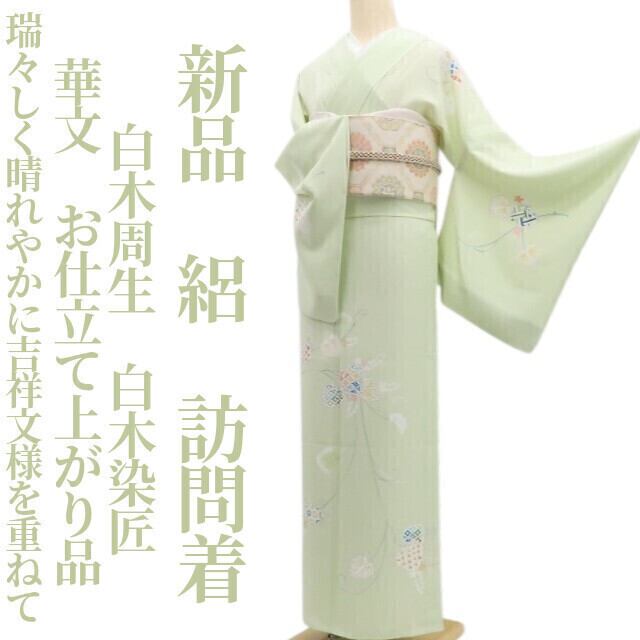 新品 絽 白木周生 白木染匠 華文 お仕立て上がり品 仕付け糸付”瑞々しく晴れやかに、吉祥文様を重ねて”訪問着 6519