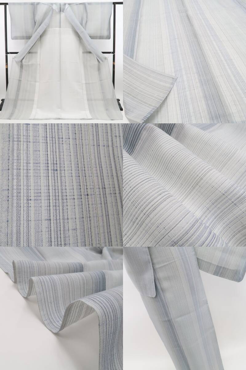 新品 紗 縦縞 夏着物 正絹“夏の軌跡に縞を引き人それぞれに想いを紡ぐ”仕付け糸付 紬 6522
