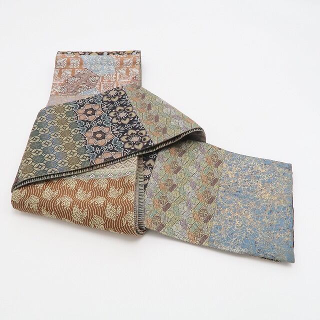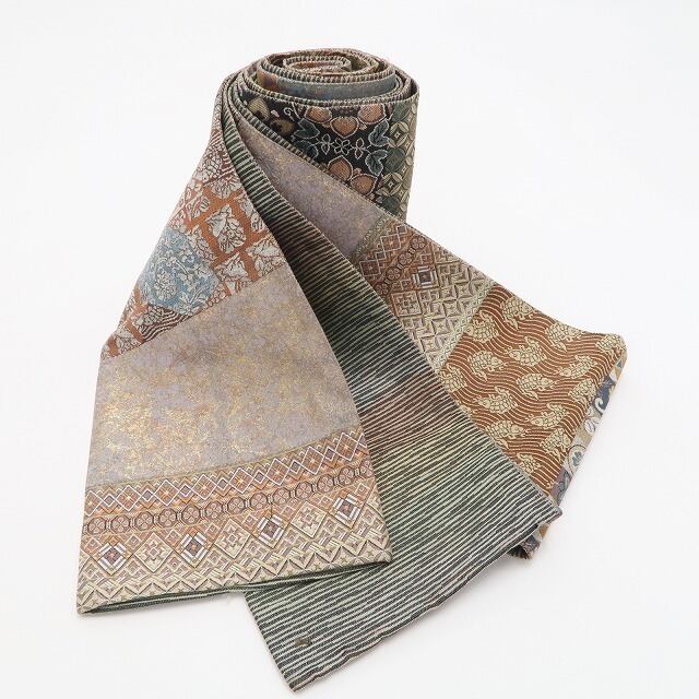 美品 切ばめ 横段 リバーシブル“表と裏であれやこれやと両面使いで二人の自分”着物 正絹 半幅小袋帯 6533