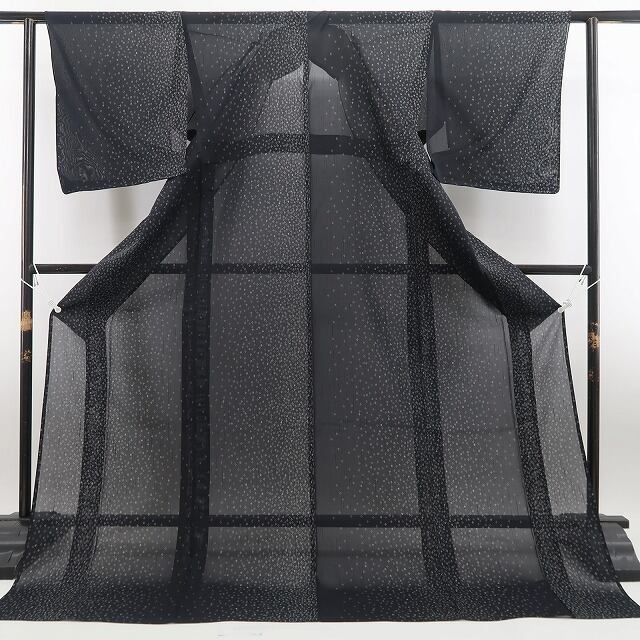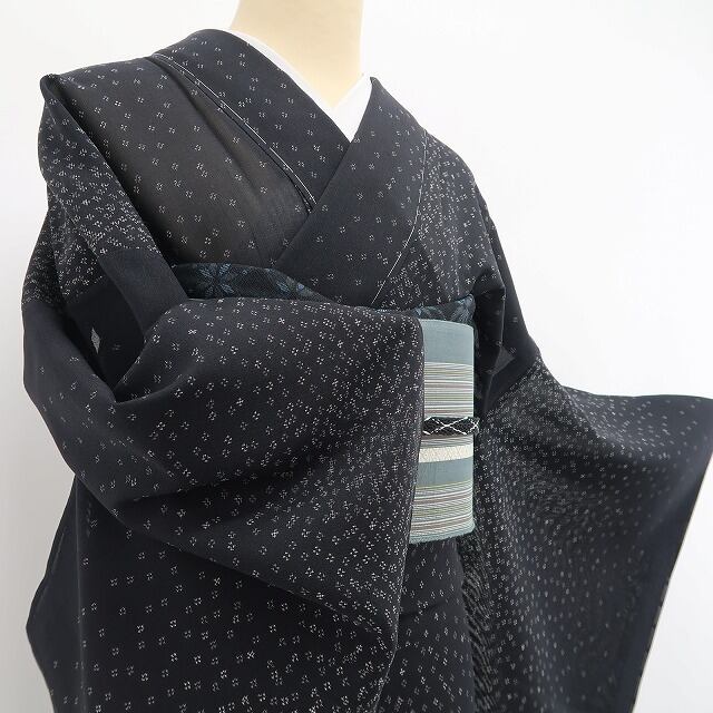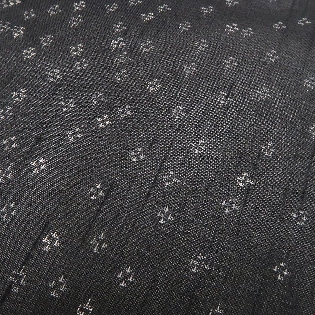 大島独特のシャリ感が活きる丸みある黒の色使い、全面に散らされたデザイン小柄の創作模様、紗紬の涼感に溢れ出す本場紬の見事な風合い、どれを取ってもその上質さは本場大島紬ならでは、素敵です。