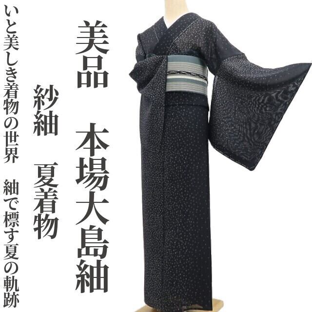 美品 紗紬 夏着物 正絹“いと美しき着物の世界…紬で標す夏の軌跡”仕付け糸付 本場大島紬 6536