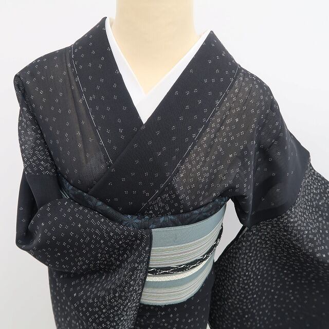 こちらのお着物は、モノトーンの彩色で夏紬の涼味を際立たせる柄行をシンプルモダンに意匠化しております。決して主張し過ぎず…大人びたセンスを表現するのに最適なお召し物です。
