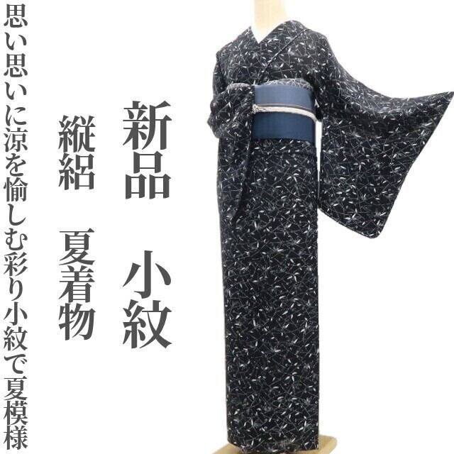 新品 縦絽 夏着物 正絹“思い思いに涼を愉しむ彩り小紋で夏模様”仕付け糸付 小紋 6544