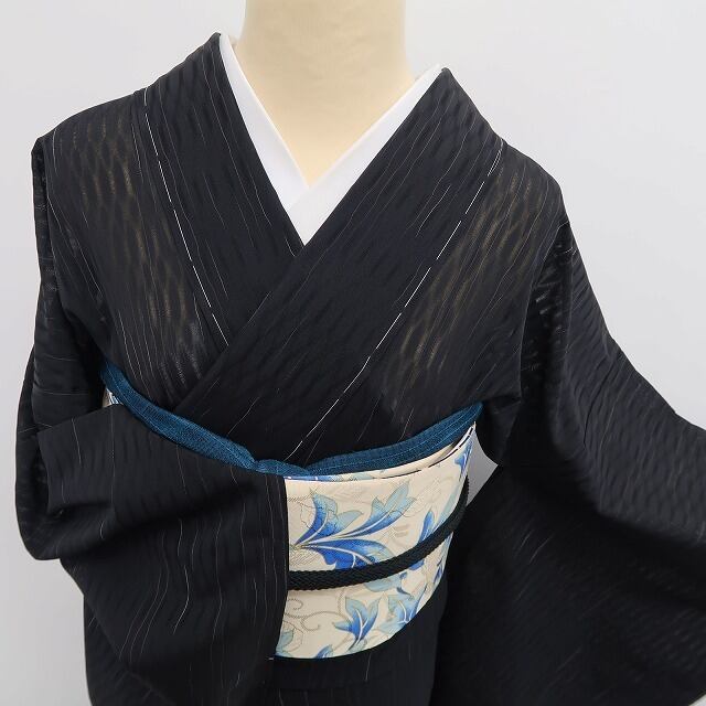大島独特のシャリ感が活きる涼やかな黒の色使い、紗の豊かな透明感に涼を趣く網目状のデザインライン、それは受け継がれる伝統の技が創り出すお洒落紬の心地よい風!溢れ出す清々しさに薫り立つ夏紬の見事な風合い、どれを取ってもその上質さは本場大島紬ならでは、素敵です。