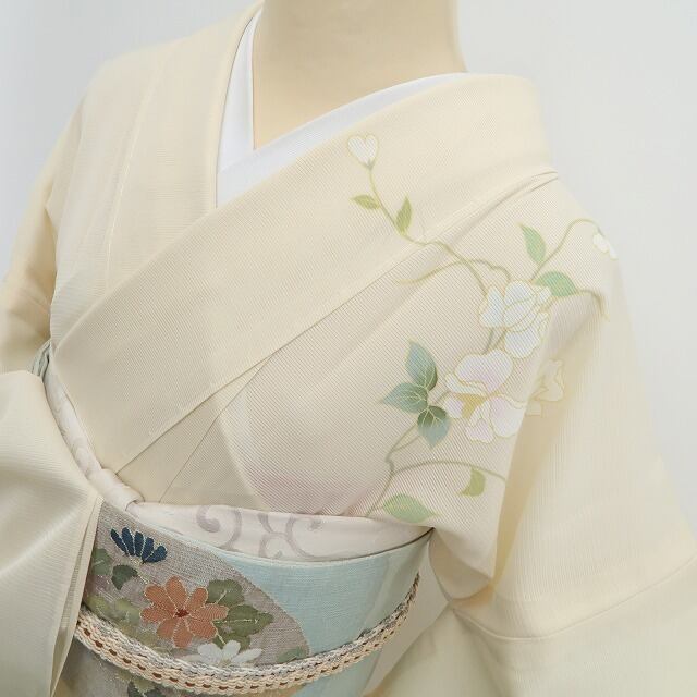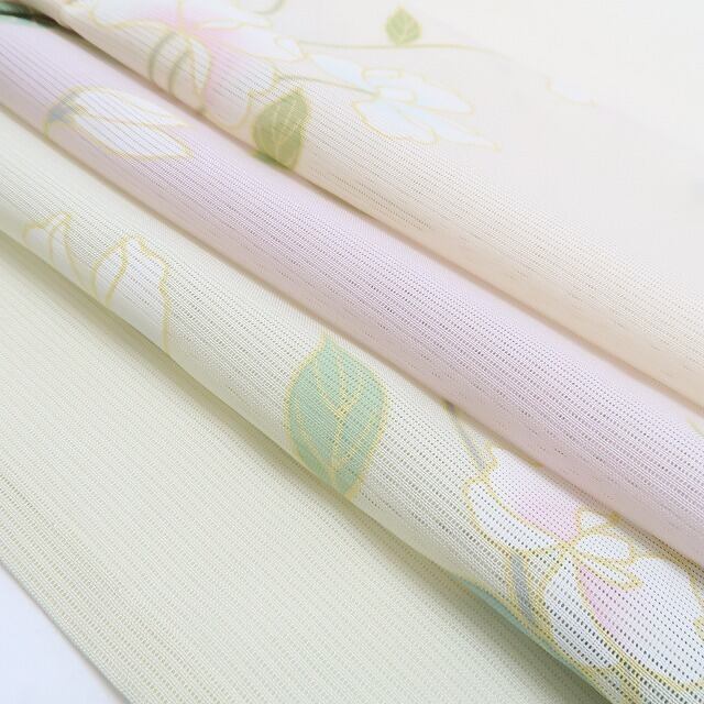 昨今、夏に和装をされる方が少なくなり希少なものとなりつつある絽のお着物は、二本の経糸を捩りながら緯糸を織り込んだもじり織で、盛夏のお召し物としてさらりとした生地質が魅力、着る方にもまた見る方にも清らかな風を感じるような涼しさを届けてくれます。