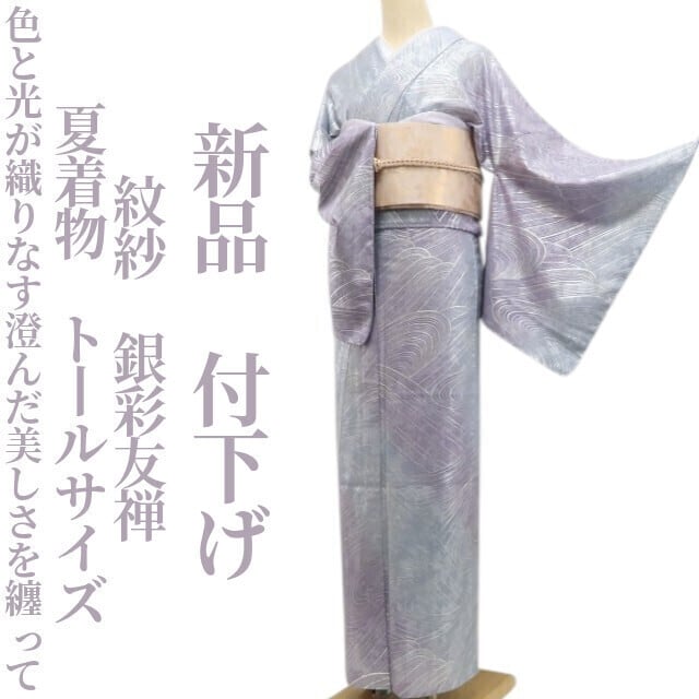 新品 紋紗 銀彩友禅 夏着物 正絹 仕付け糸付 トールサイズ”色と光が織りなす澄んだ美しさを纏って”付下げ 6553