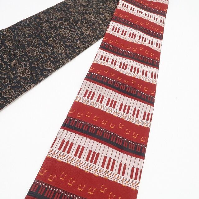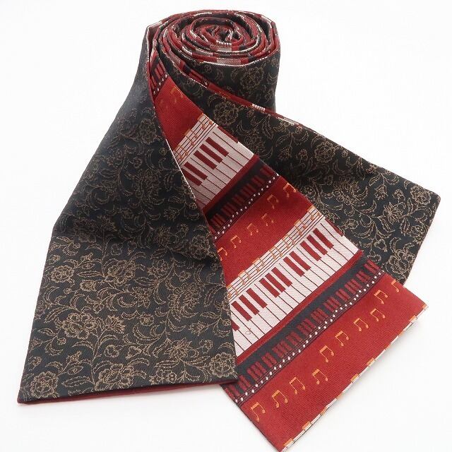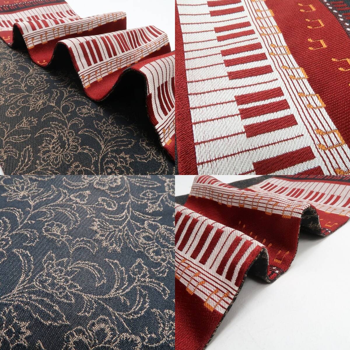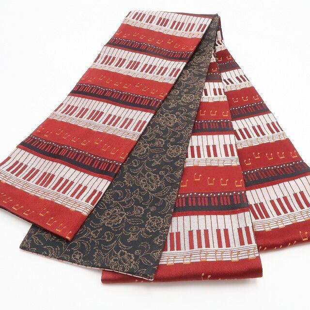 新品 リバーシブル ピアノ×唐花 着物 浴衣”ピアノの遊び心と唐花の気品”半幅小袋帯 6555