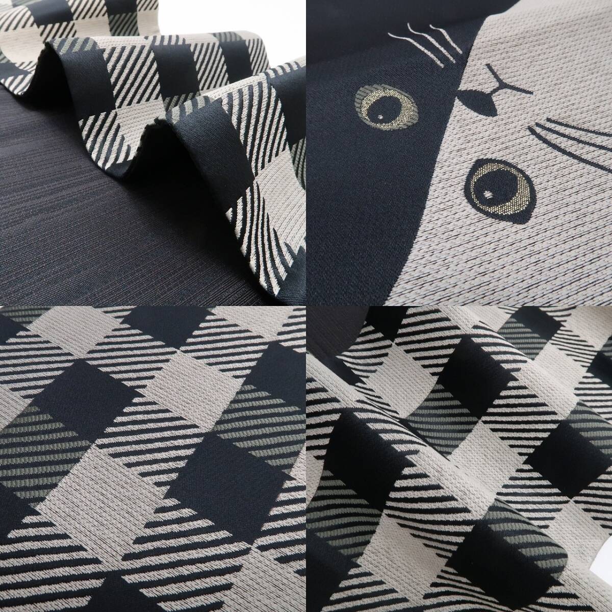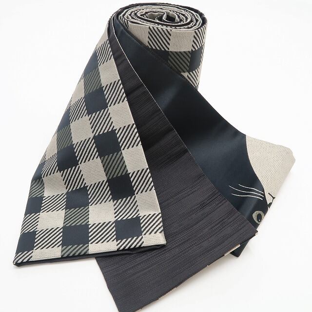 新品 猫×チェック×ストライプ 着物 浴衣”いつもそばに、パッチリおめめの猫”半幅小袋帯 6557