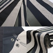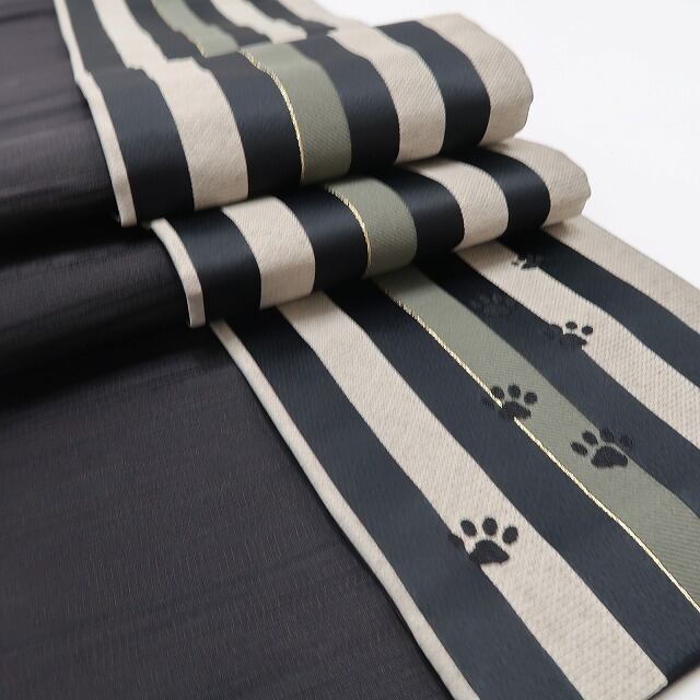ストライプ部分には、猫が軽やかに残した足跡がちょこんと添えられ、帯全体に遊び心をプラスしています。