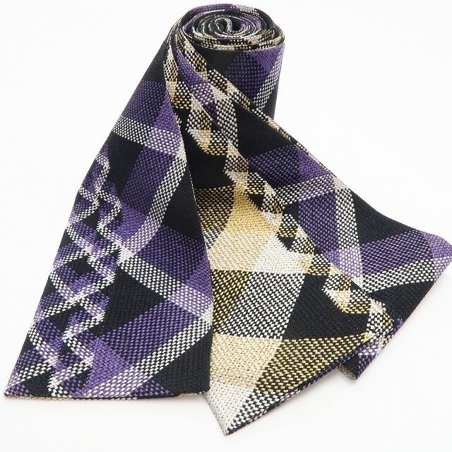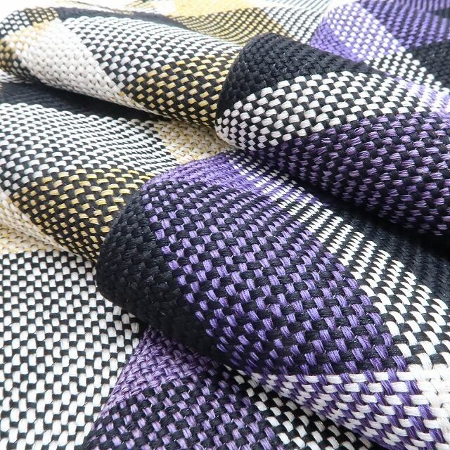 《表面》 黒と紫の色糸で織り込まれたジグザグ格子のデザインライン、それは西陣組織の技が創り出す和を心得たハイセンス!整然に薫る気品の表情が和モダン美しい極上の仕上がりになっています。