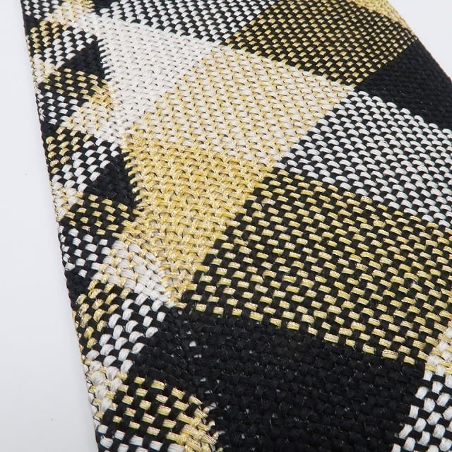 《裏面》 黒とゴールドのコントラストで織り込まれた表と同じデザインライン、シンプルなテーマながらシンメトリーな柄行きが醸し出すひと味違う帯の奥行、洗練香るその表情は必見の価値あり!