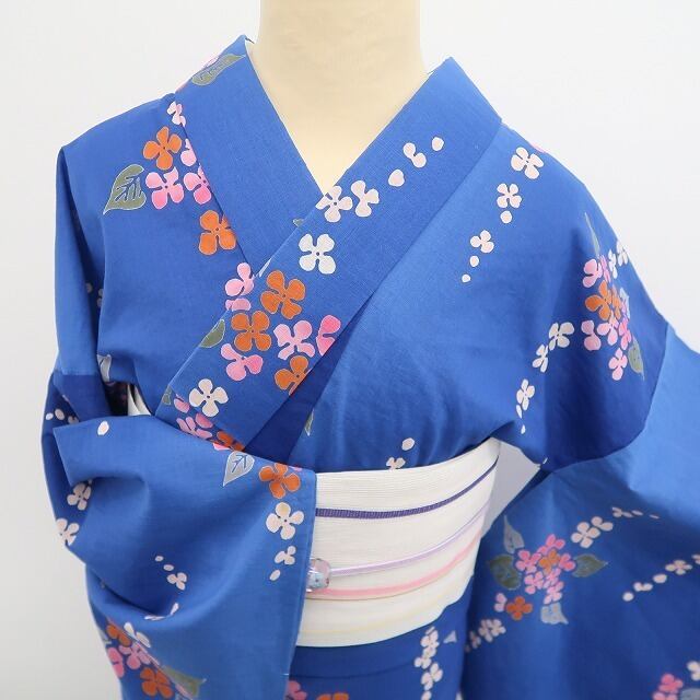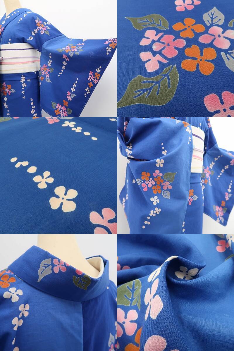 鮮やかな青藍色の地に煌いて色を挿す季節の風物“紫陽花の花”、爽やかな涼味に夏を趣くお洒落な空気感…“これぞ!夏の華やぎ”、さらりとした綿素材の肌触りが貴女に快適な着心地を届けてくれることでしょう。