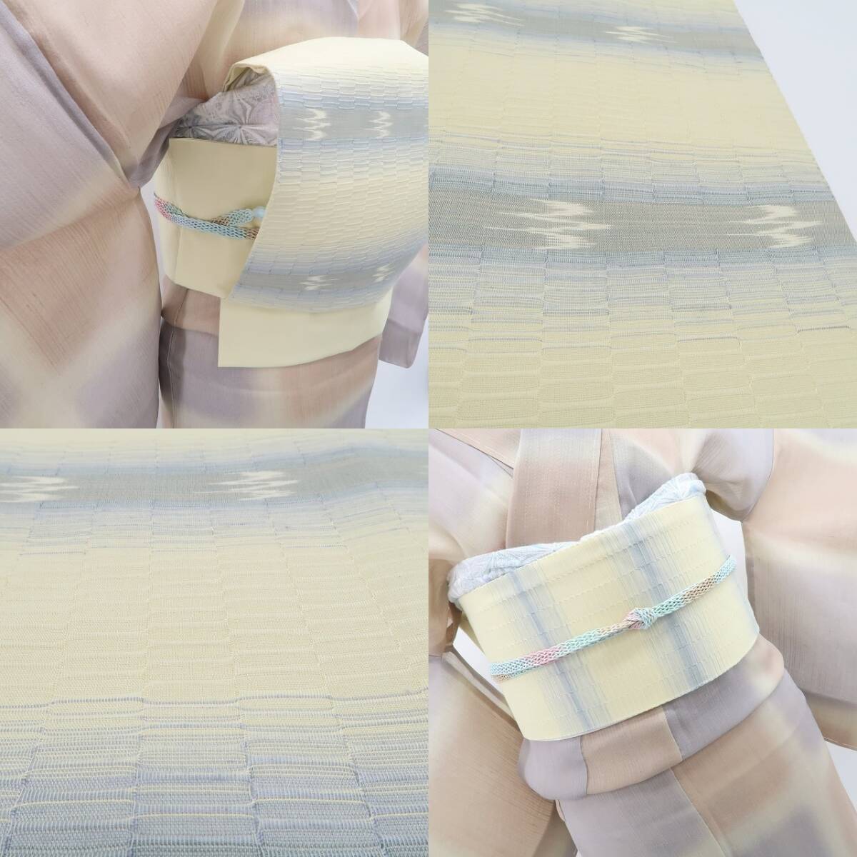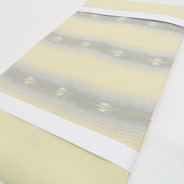 沖縄の南風原町にある丸正織物工房のひと品、涼感豊かな夏着物…南風原花織/琉球絣の“なごや帯”、弊社お仕立て上がり品でございます。