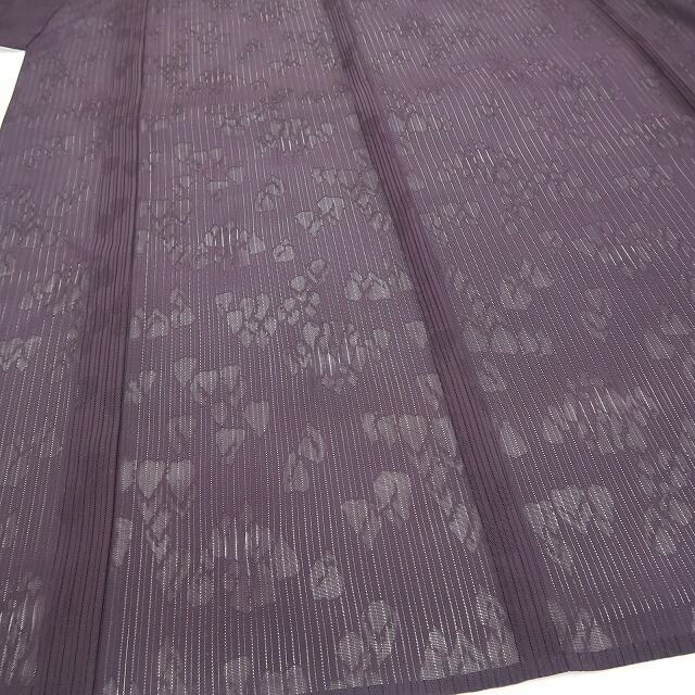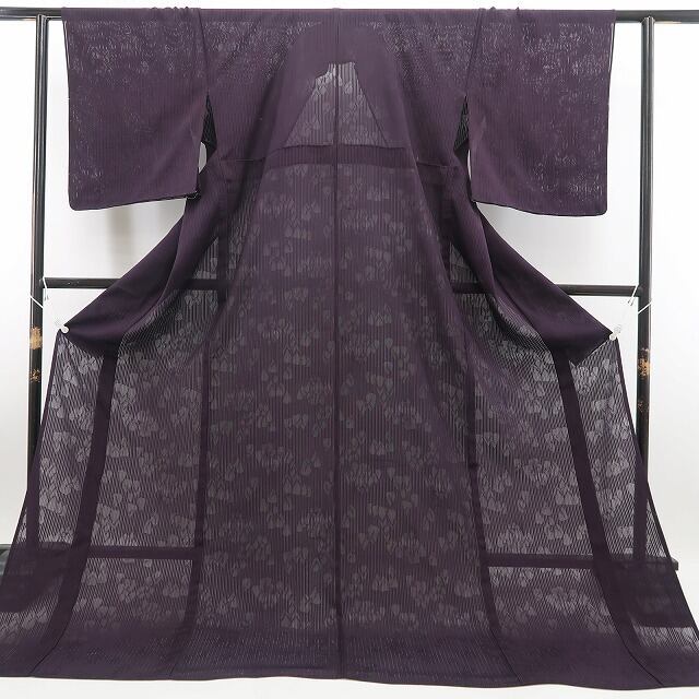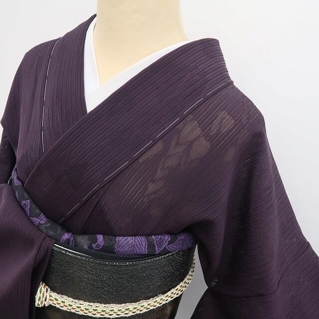 シックな減紫色が大人の雰囲気を漂わせる、縦絽の色無地。トールサイズのお品でございます。