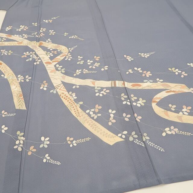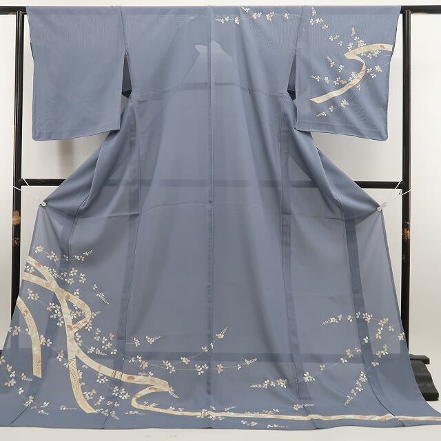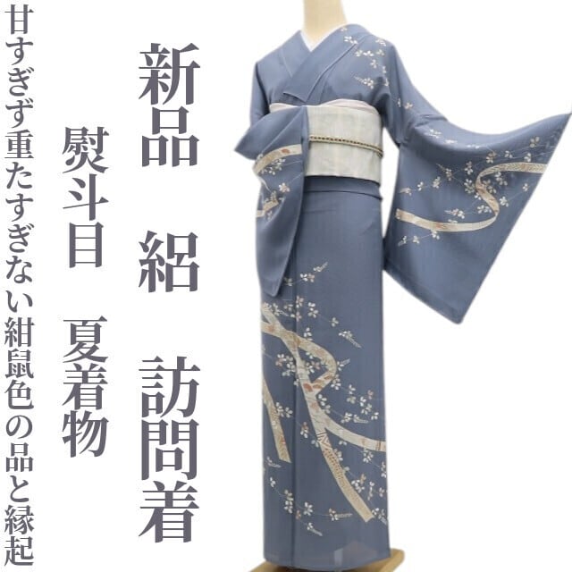 新品 絽 熨斗目 夏着物 正絹 仕付け糸付”甘すぎず重たすぎない、紺鼠色の品と縁起”訪問着 6581
