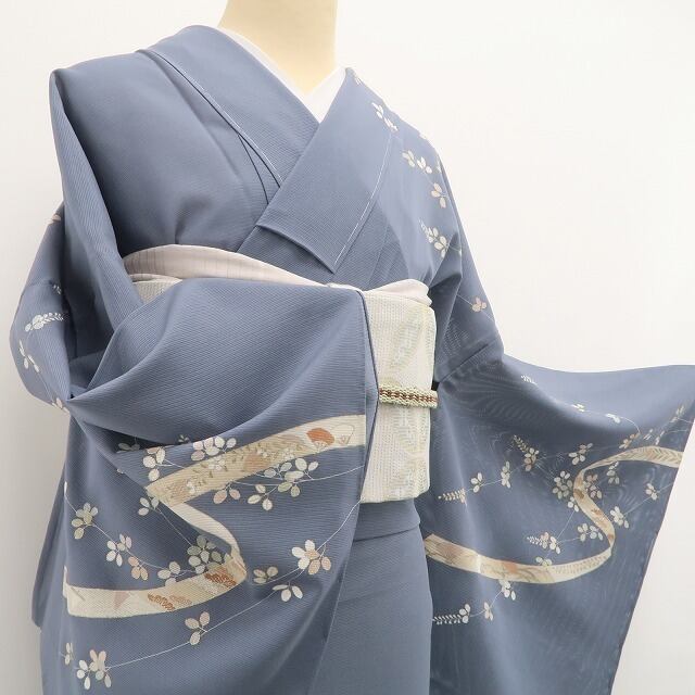 紺鼠色に熨斗目模様が映える、夏の訪問着でございます。