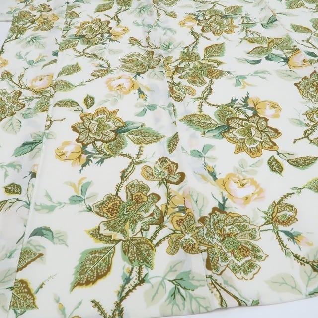 生成り色の地に咲き誇る薔薇の花々。