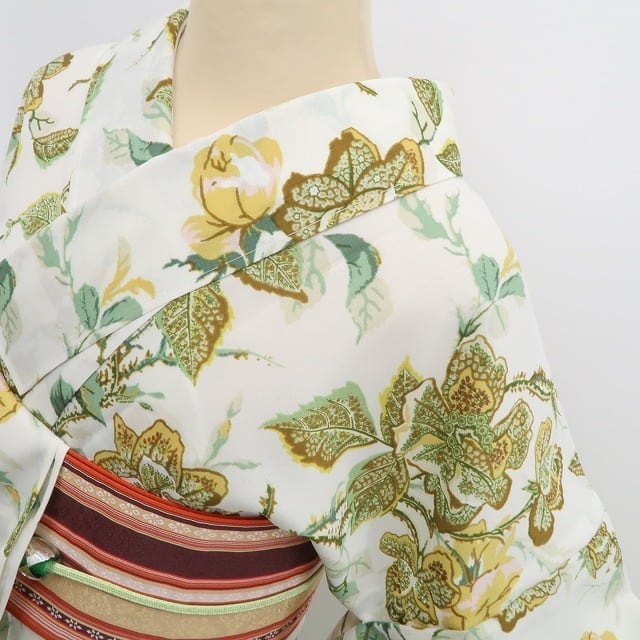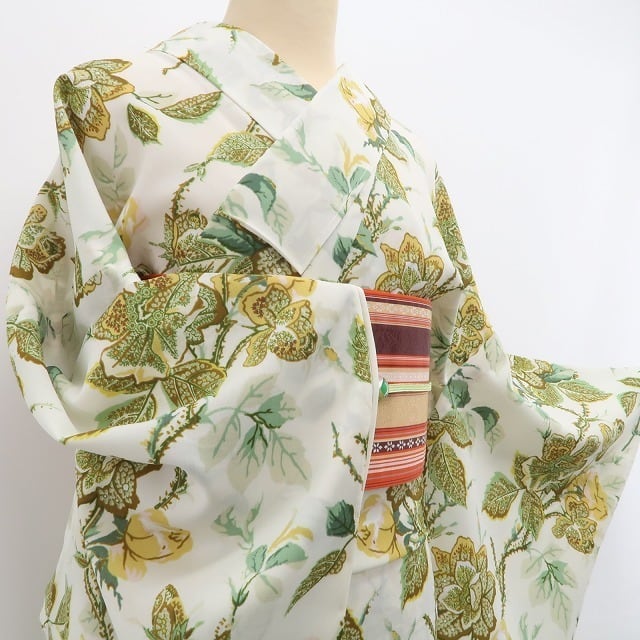 浴衣といえば朝顔や金魚柄が定番ですが、この一枚は薔薇を主役にしたデザイン。