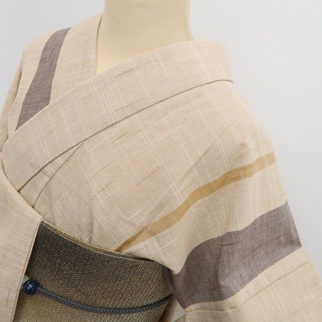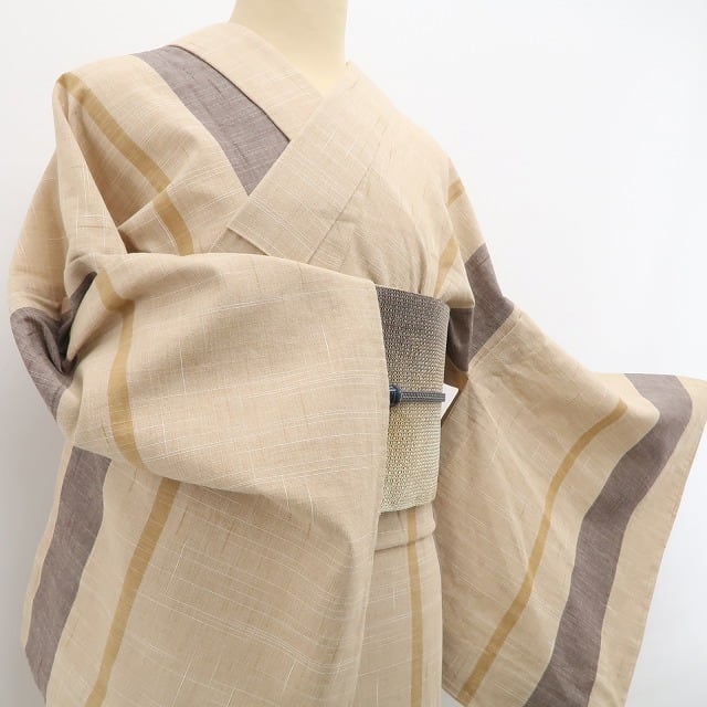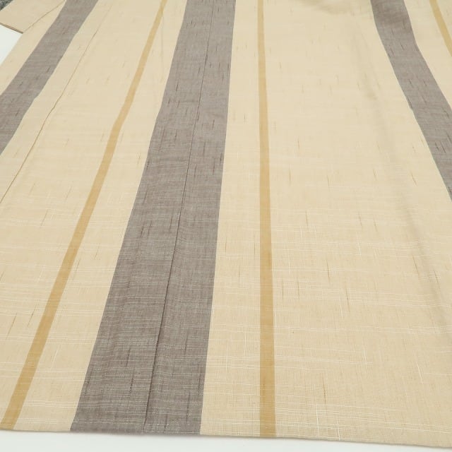 丁子色の温かみある縦縞が、落ち着いた中にほんのり華やかさを漂わせる一枚。