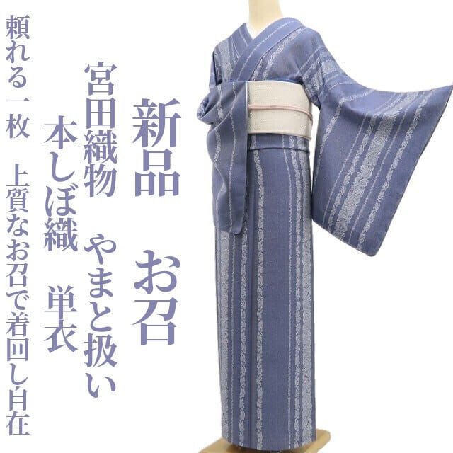 新品 単衣 宮田織物 やまと扱い 本しぼ織 着物 正絹 仕付け糸付”頼れる一枚。上質なお召で着回し自在”お召 6609