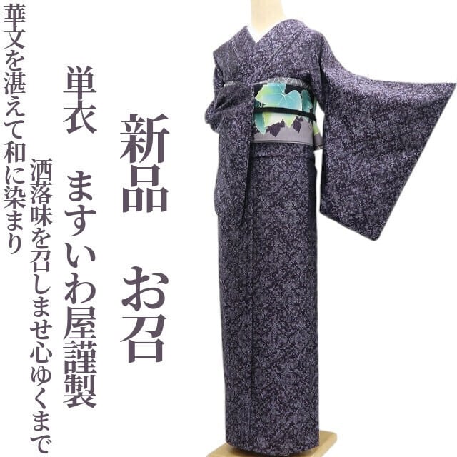 新品 単衣 ますいわ屋謹製 着物“華文を湛えて和に染まり洒落味を召しませ心ゆくまで”正絹 仕付け糸付 お召 6618