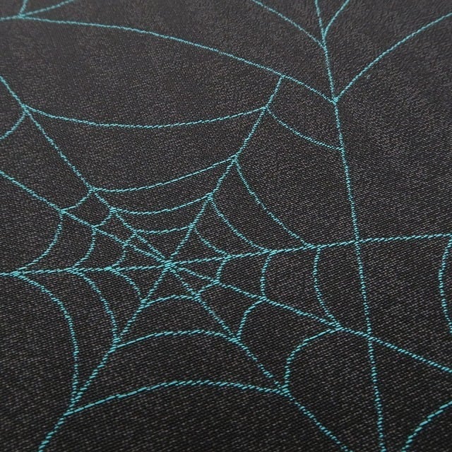 蜘蛛や蜘蛛の巣模様は、天から地へ喜びを運ぶ使者として中国から伝わった縁起の良い模様です。蜘蛛はとてもおめでたいものとされ、糸を出して網を張るところから物や客を集める文様として用いられました。