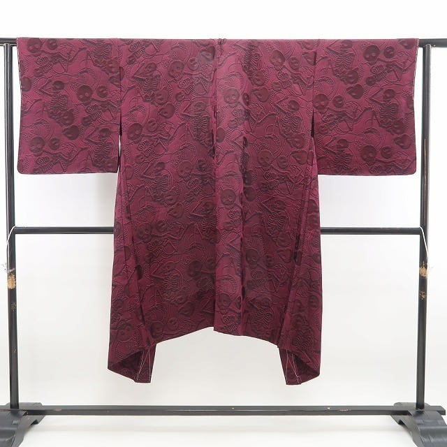 梅紫色×ドクロの長羽織は、お手持ちのお着物に重ねるだけで、装いをアップデートする一枚。