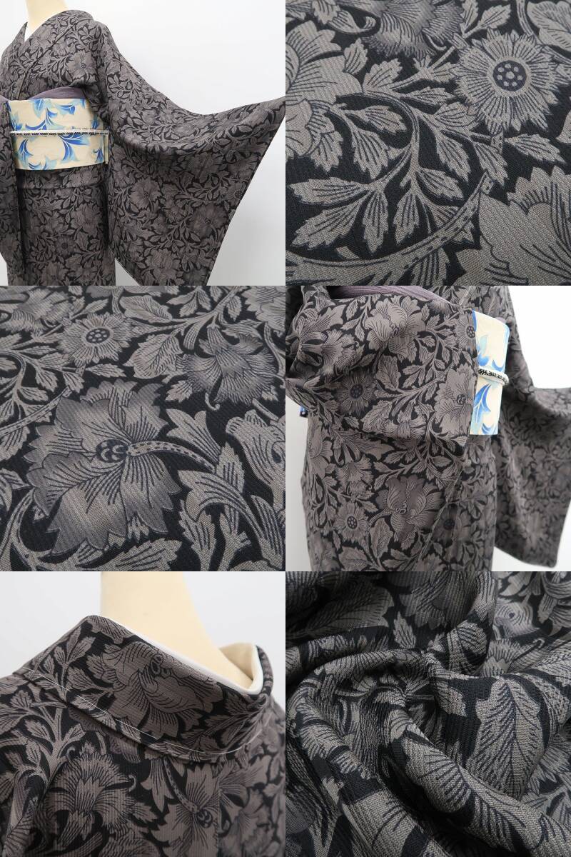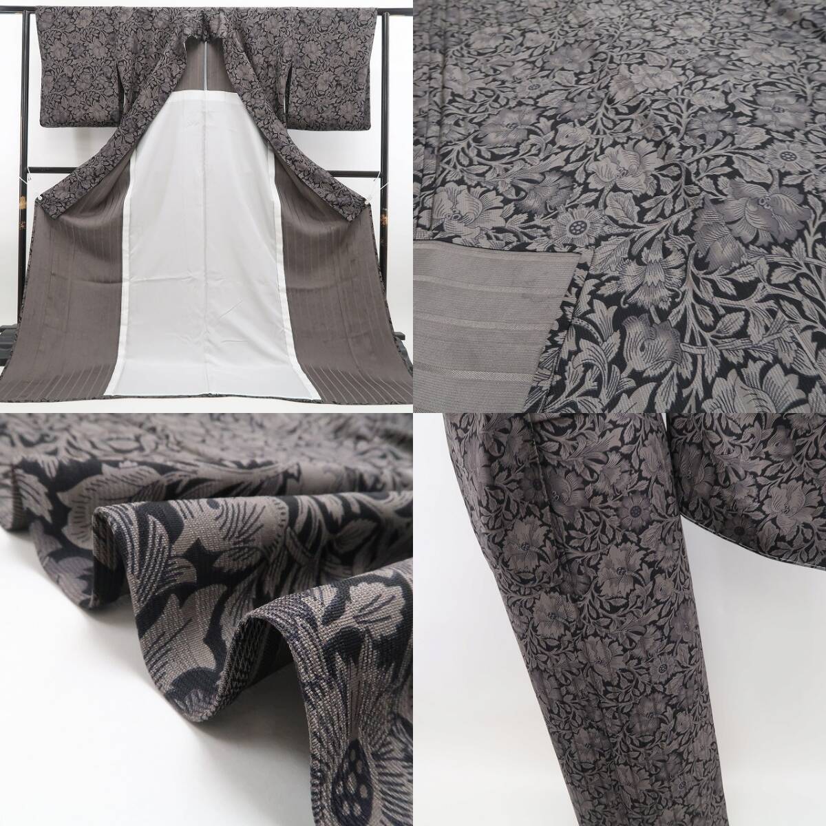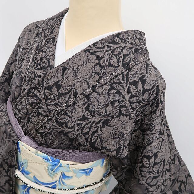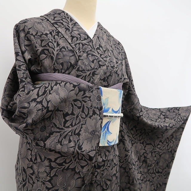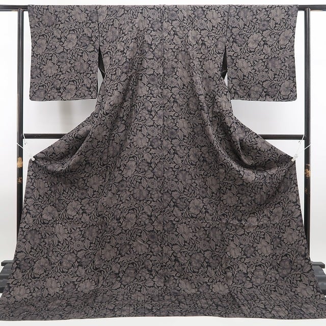 黒×鉛色のシックな色合いに唐花が描かれた小紋。トールサイズのお品でございます。